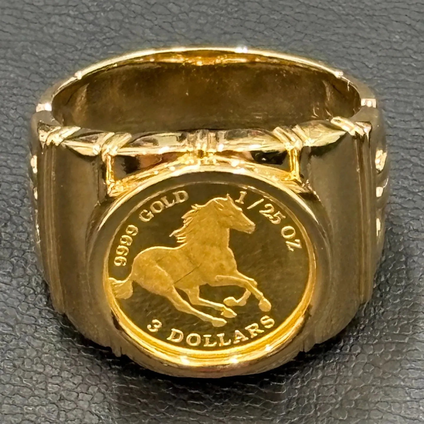 こちらのリングは、男性向けのアクセサリーとしてたいへん人気のあるホースコインをリング枠に組み込んだメンズ向けの印台リングです。デザイン性の高さと独特の魅力をもち、スタイリッシュに身に付けられることから、多くの方々に愛されております♬