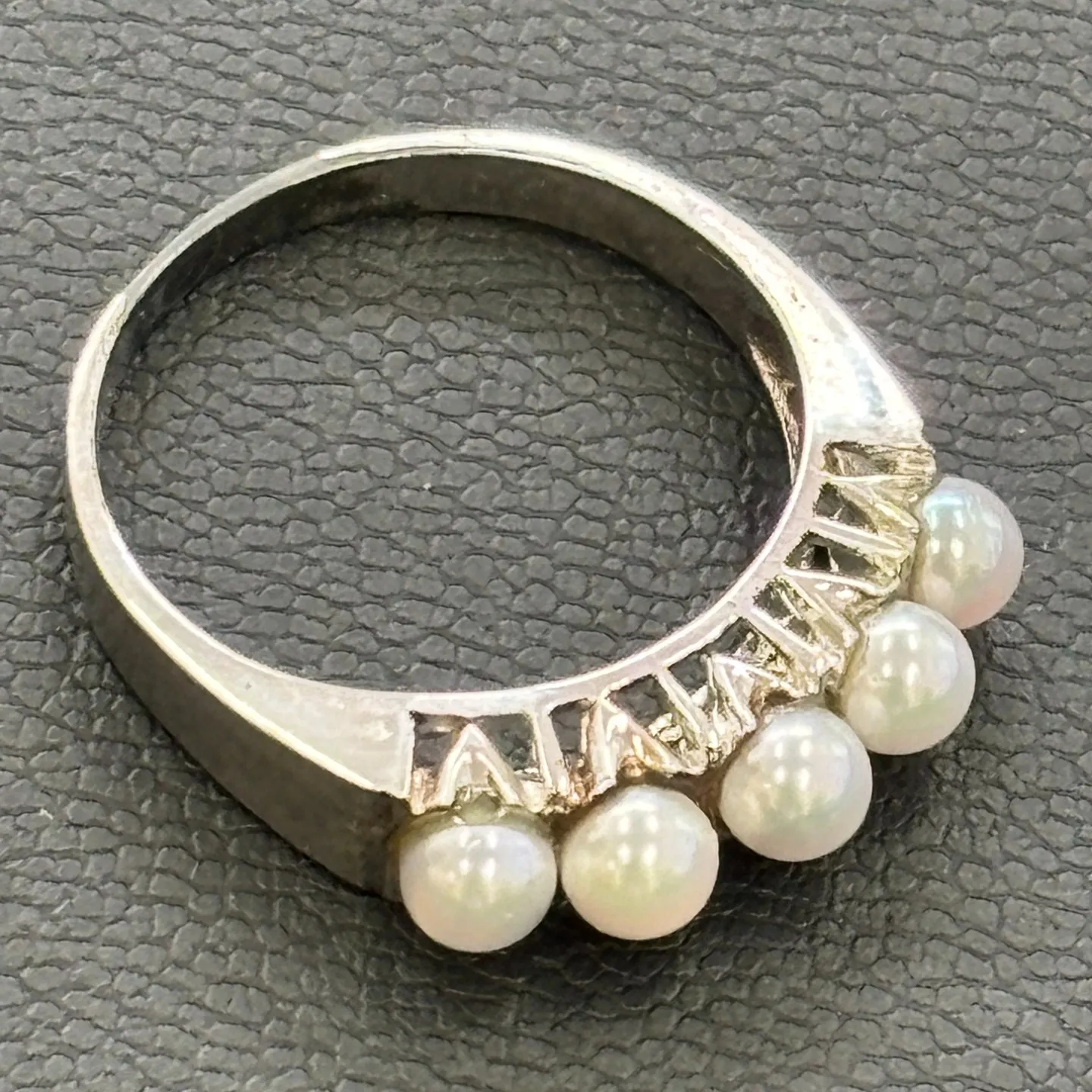 このリングには5個の繊細な白石が美しく配置されており、品のあるアクセントとして輝いています♬