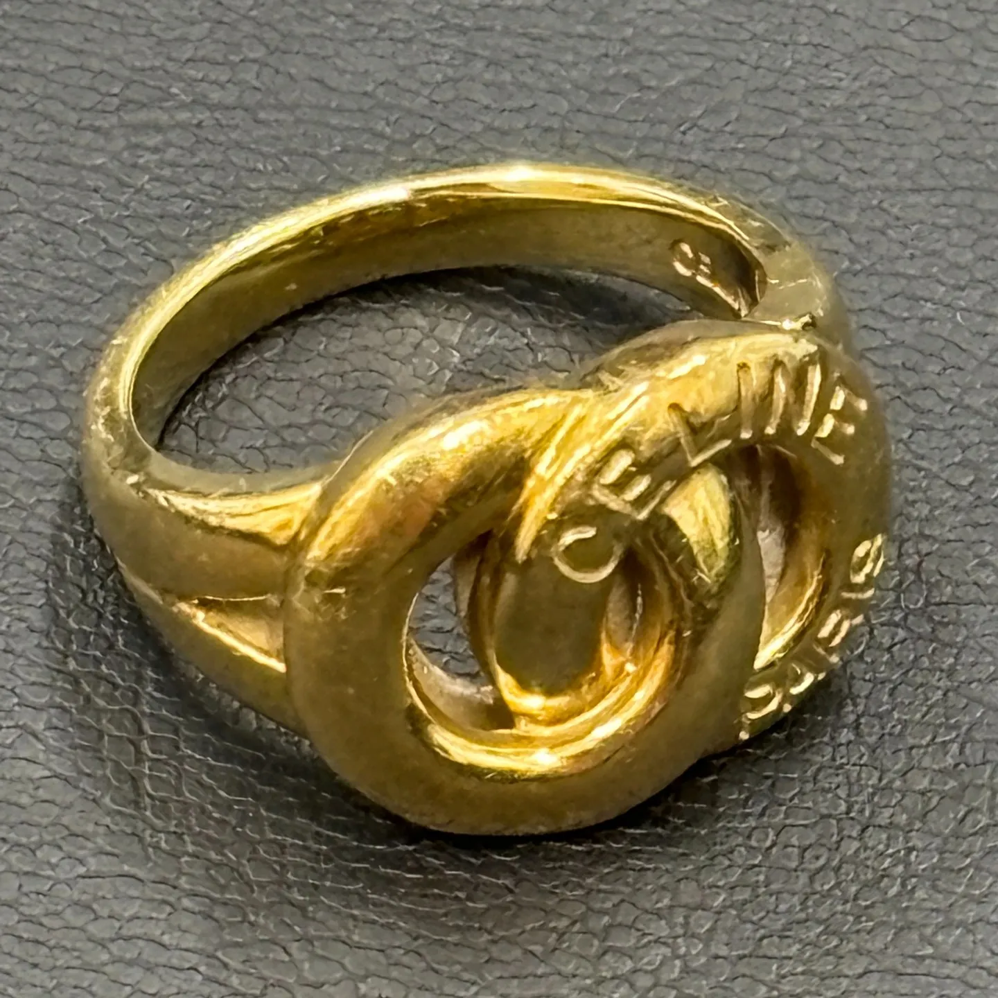 セリーヌのロゴが刻まれていて、ダブルサークルリングやノットリングとして知られています。シンプルでありながらエレガントな印象を与えるため、多くの方に愛されています♬
